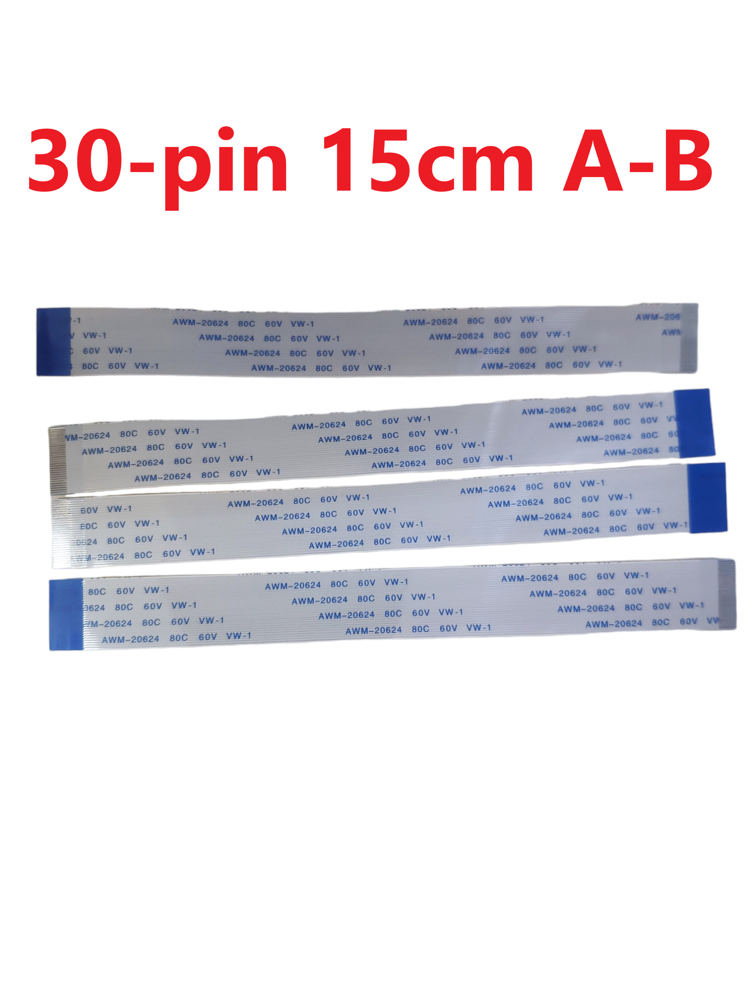 Гибкий печатный шлейф (Flat Flexible Cable, FFC) AWM 20624 80C 60V VW-1 30-pin 0.5mm A-B 15cm отличается высокой прочностью и долговечностью.