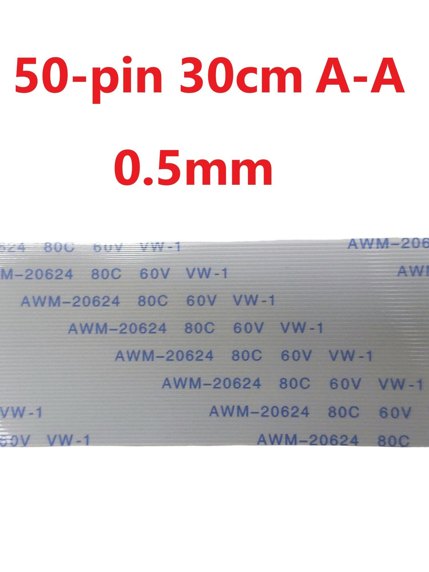 Шлейф FFC 50-pin Шаг 0.5mm Длина 30cm Прямой A-A AWM 20624 80C 60V VW-1 - это качественная запчасть для ноутбуков, моноблоков и мониторов, которая обеспечивает надежное соединение между компонентами вашего устройства.